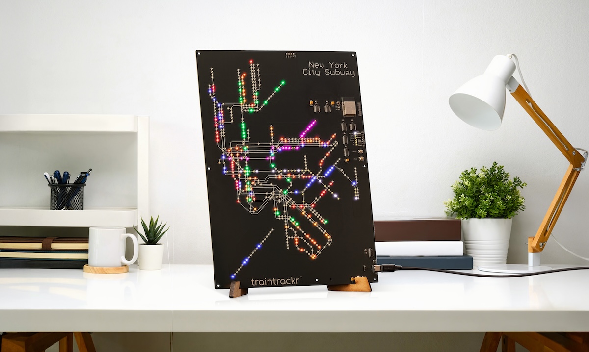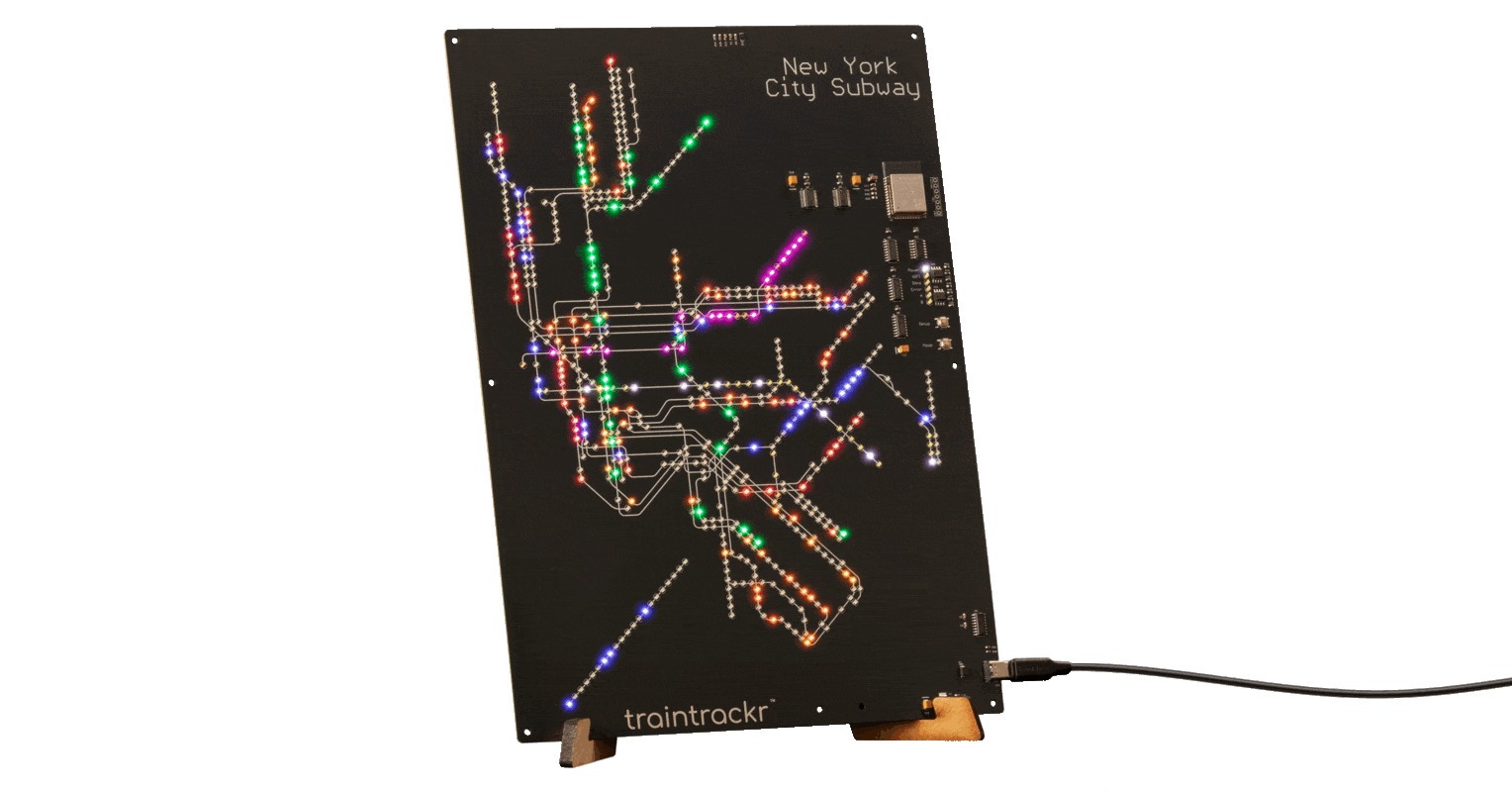 Tracks trains on the MTA in New York City, showing trains arriving in stations live, as each vehicle moves around the network.